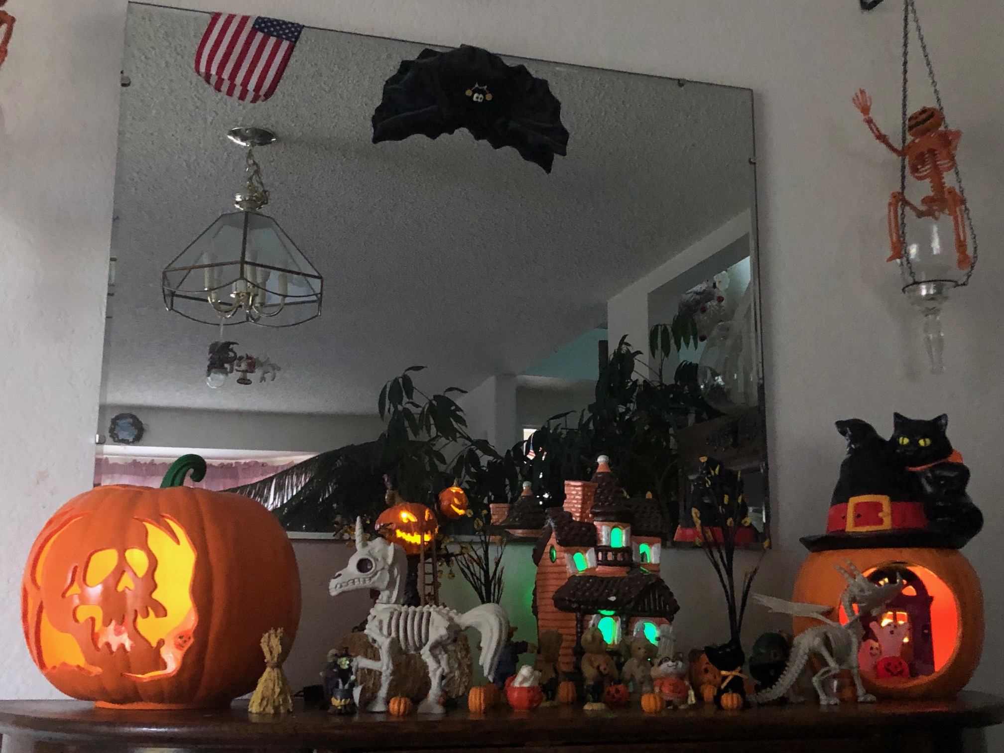 Their friend, Broomhilda (skeleton), from Texas (thank you Jessica) was otherwise preoccupated visiting an old flame and promised to be more productive next week!