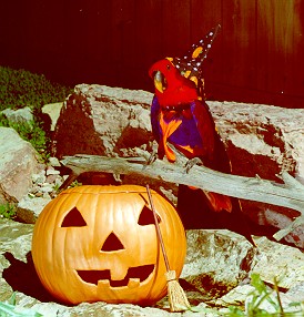 Hallows Eve! Halloween is my favorite time of year. Cooler weather, sight and sound of colorful leaves swirling toward the ground or crunching under foot. The smell of fall in the air, pumpkins and pumpkin flavored everything!! Love it! Also Halloween is the only day you can be anyone or anything you want and no one will say a word. Don’t forget it’s the day the veil between the living and the dead is the thinnest! What will you be this Halloween? Taco our parrot decided to display her Halloween costume. What do you think? Next week it will be Mystic’s turn .